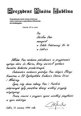Udział w uroczystej akademii w Szkole Podstawowej nr 16 oraz w Jesiennych Spotkaniach Chórów '95 zorganizowany przez Polski Związek Chórów i Orkiestr Zarząd Oddziału oraz Wydział Kultury Sportu i Turystyki Urzędu Wojewódzkiego z okazji 77 rocznicy Odzyskania Niepodległości zapisały się pełnym uznaniem w kalendarzu chóralnym. W tym samym miesiącu z okazji święta patronki muzyki - świętej Cecylii Polski Związek Chórów i Orkiestr Oddział w Lublinie zorganizował w Archikatedrze Lubelskiej koncert w ramach Tridum Cecyliańskie a występ Chóru spotkał się z pełnym uznaniem.