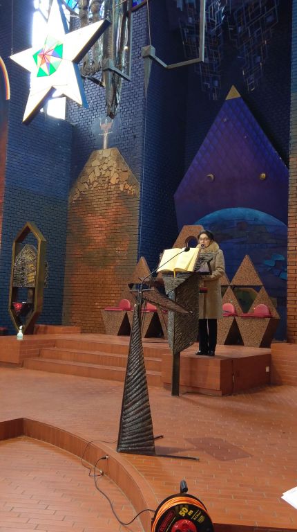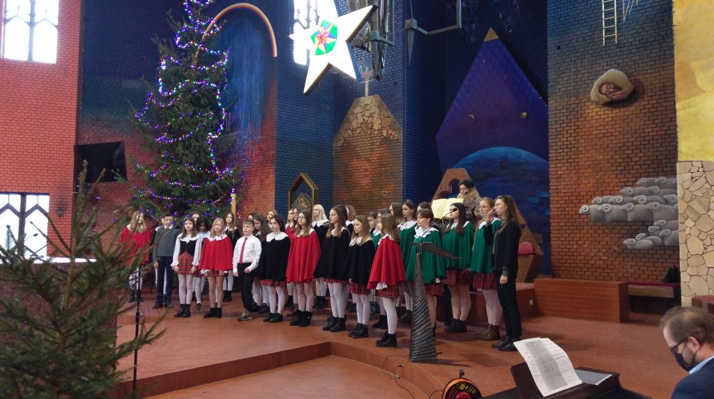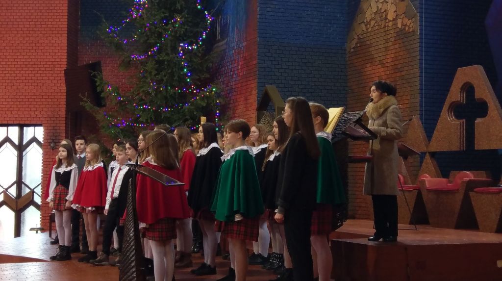 Chór wspierał śpiewem wokalną oprawę nabożeństwa o godzinie 11: 00, a tuż po zakończeniu mszy, przy Szopce pod kierunkiem Zdzisława Ohara, Karoliny Filipczak – Sulimy i Joanny Knap, z repertuarem kolędowym, prezentując najznakomitsze opracowania pieśni bożonarodzeniowych rozbrzmiewały zarówno utwory dobrze znane, jak i te przypominane rzadziej zaprezentowane przez dwie grupy, najmłodszą i starszą Chóru. Przy akompaniamencie pianina Kamila Turczyna w muzyczną niespodziankę kompozycją Buddy Greene w świat pytań Marka Lowry „Mary, Did You Know?” w tłumaczeniu Piotra Nazaruka zabrała słuchaczy Julia Zygan. Słowem przewodnim to miniaturowe i symboliczne spotkanie z Kolędą prowadziła - Małgorzata Sagan.