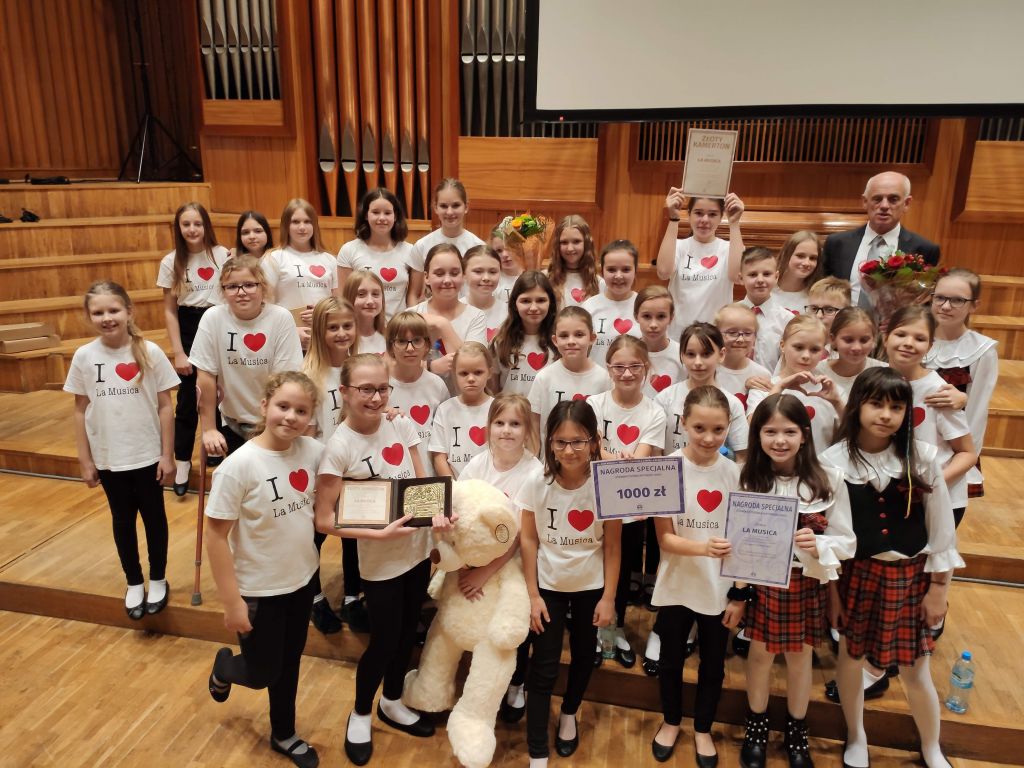 maskotkę ufundowaną przez Dyrektora Pałacu Młodzieży w Bydgoszczy dla najmłodszego uczestnika Konkursu otrzymała najmłodsza uczestniczka Konkursu Jagoda Łątka. Grupa najmłodsza, pod dyrekcją Zdzisława Ohara otrzymała Złoty Kamerton oraz Nagrodę Specjalną Stowarzyszenia Autorów ZAiKS, grupa młodsza Chóru, pod dyrekcją Karoliny Filipczak - Sulima otrzymała Złoty Kamerton oraz Puchar Ministra Edukacji Narodowej za najwyższą punktację w kategorii, Puchar Ministra Kultury i Dziedzictwa Narodowego, Nagrodę Specjalną Ministra Kultury i Dziedzictwa Narodowego za najlepsze wykonanie utworu obowiązkowego - Canzonetta Marcina Łukasza Mazura do słów Marty Berowskiej, Nagrodę Specjalną Stowarzyszenia Autorów ZAiKS oraz Nagrodę Specjalną Jury Nieoficjalnego dla najlepszego chóru z kategorii dziecięcych chórów szkolnych.